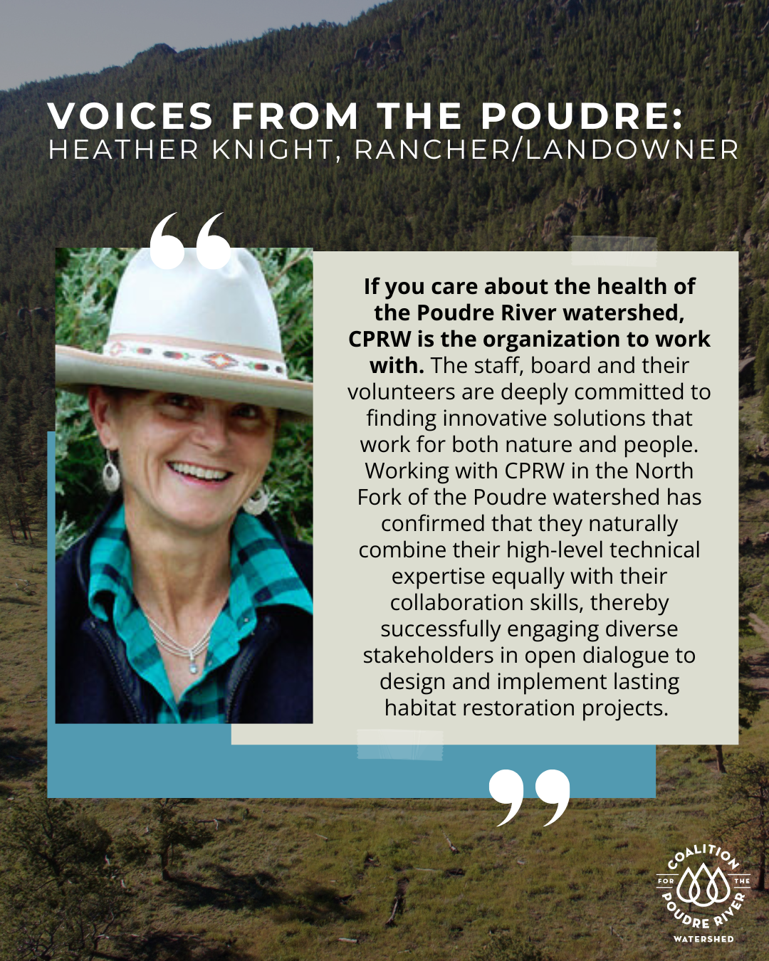 These efforts are only possible through strong partnerships, science-based planning, coordinated fundraising, and the dedication of volunteers, landowners, and supporters across the watershed. Thank you to everyone who contributed time, resources, and passion in 2025 - your collective efforts are making a lasting difference for the Poudre Watershed and the communities that depend on it.