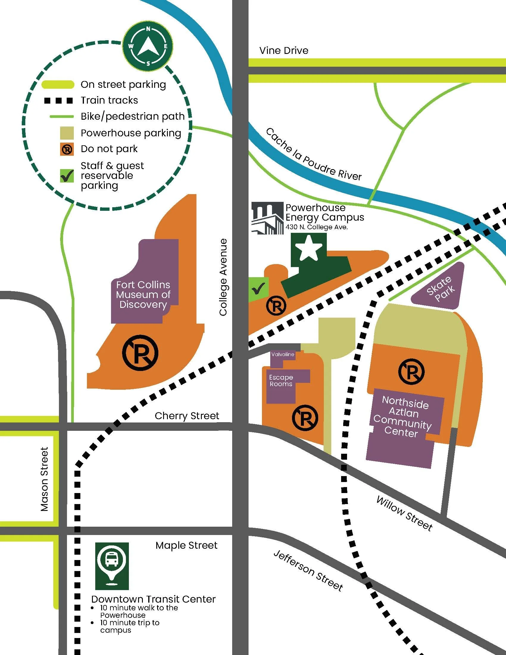 Please park in Powerhouse parking when visiting our office at the Powerhouse (430 N .College Ave., Suite 430).