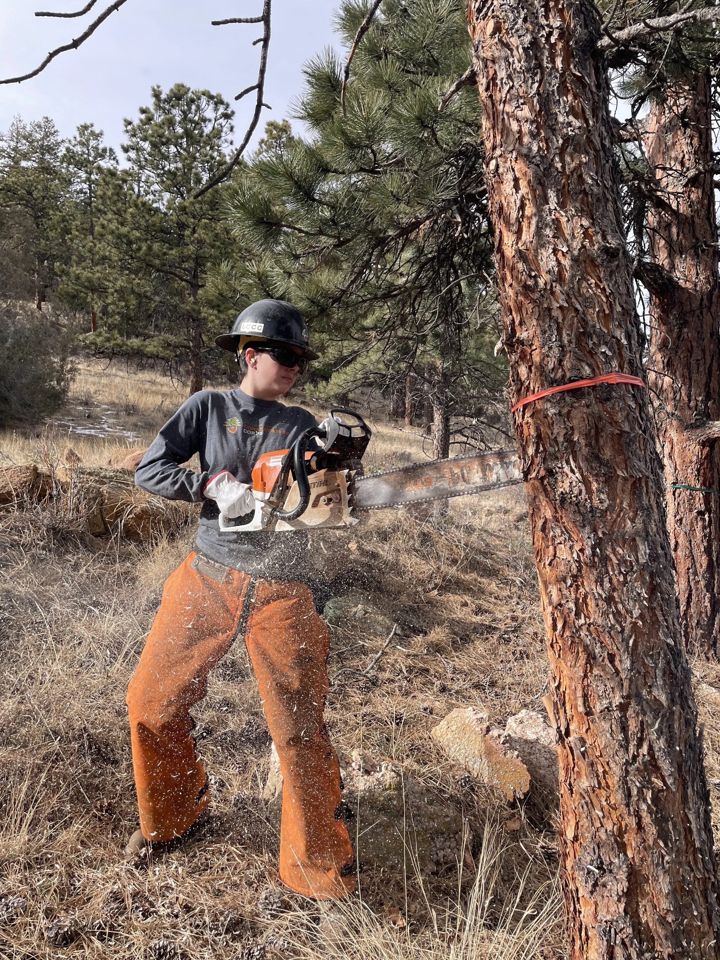 The Larimer County Conservation Corps (LCCC) Strike Team has been hard at work creating defensible space within home ignition zones (HIZ) on a few properties in each of the four communities within the Red Feather Lakes Area Wildfire Defense Project. These HIZ pilot projects will help us work out any issues before the program is expanded to cover the greater Red Feather Lakes area. Pilot properties were selected based on readiness, need, or those not physically able to complete the work. One such property belonged to a woman undergoing cancer treatment, and the HIZ work both made her home safer and generated enough firewood to supply the resident and a few of her neighbors. So far, HIZ pilot properties have been completed in Glacier View, Cherokee Meadows, and Crystal Lakes.