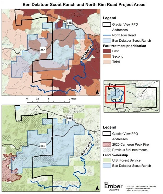 The GVFPD, local managers. and other partners identified the Ben Delatour Scout Ranch and North Rim Road area as locations for immediate fuel reduction activities.